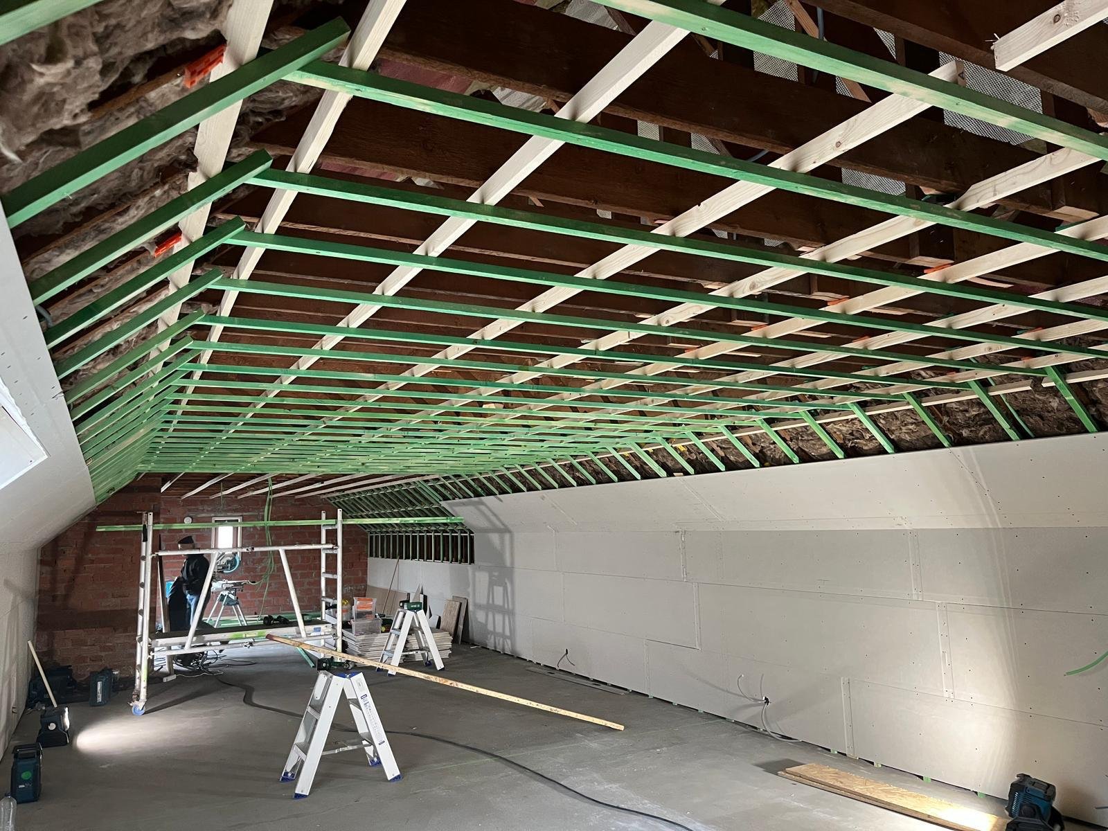 Plaatsen van dakisolatie afgewerkt met gyproc